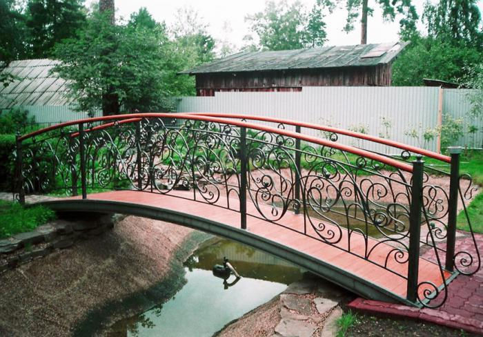 Если на Вашем участке есть водоем или ручей, и Вы выбираете мостик, то стоит задуматься о кованом варианте. Ковка в ландшафте прекрасно сочетается с такими натуральными материалами как камень и дерево, благодаря чему кованый мостик гармонично впишется в стиль практически любого сада и придаст ему неповторимый и презентабельный вид.